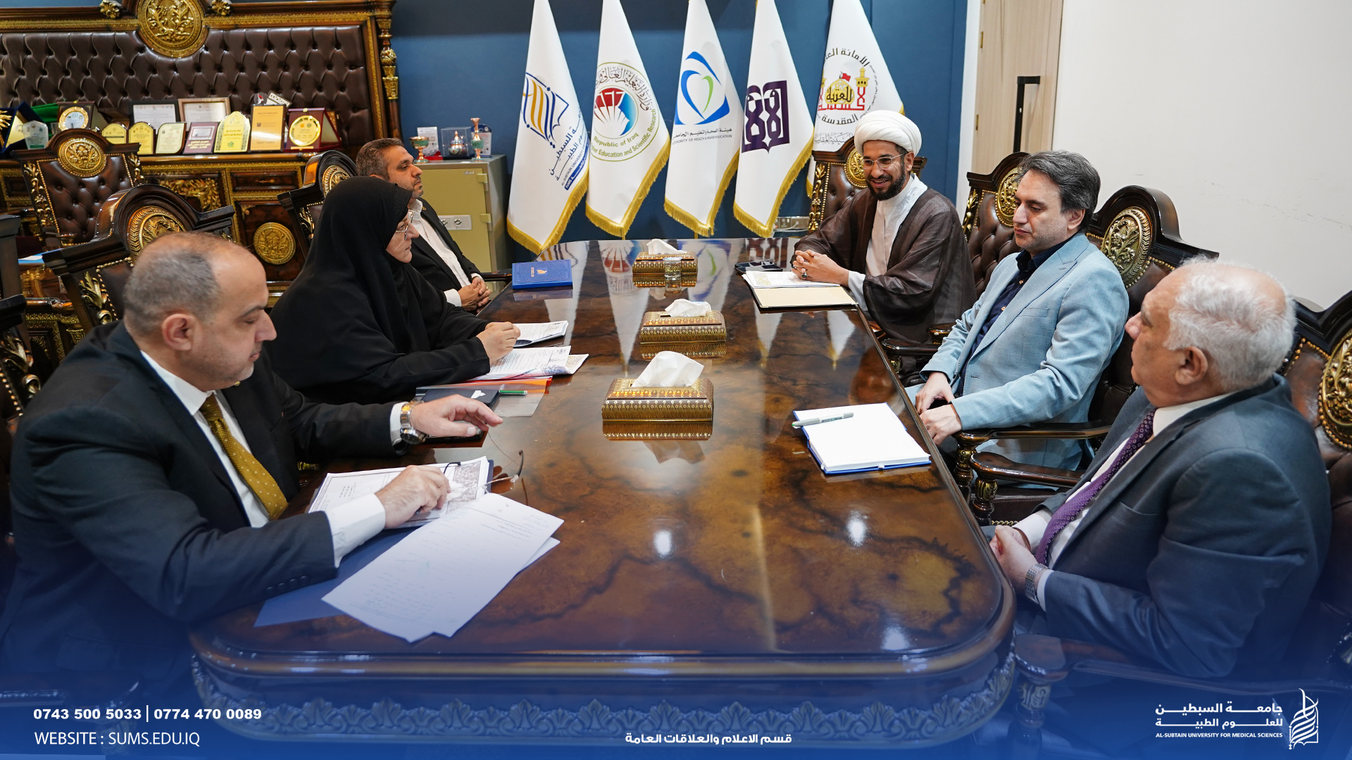 في خطوة بارزة لتعزيز القيم الأخلاقية والسلوك المهني في الوسط الأكاديمي، احتضنت جامعة السبطين (عليهما السلام) للعلوم الطبية اجتماعًا مهمًا ضمّ رؤساء ثلاث جامعات عراقية هي: جامعة وارث الأنبياء، وجامعة الزهراء، وجامعة السبطين، وذلك بحضور فضيلة الشيخ صباح الساعدي.