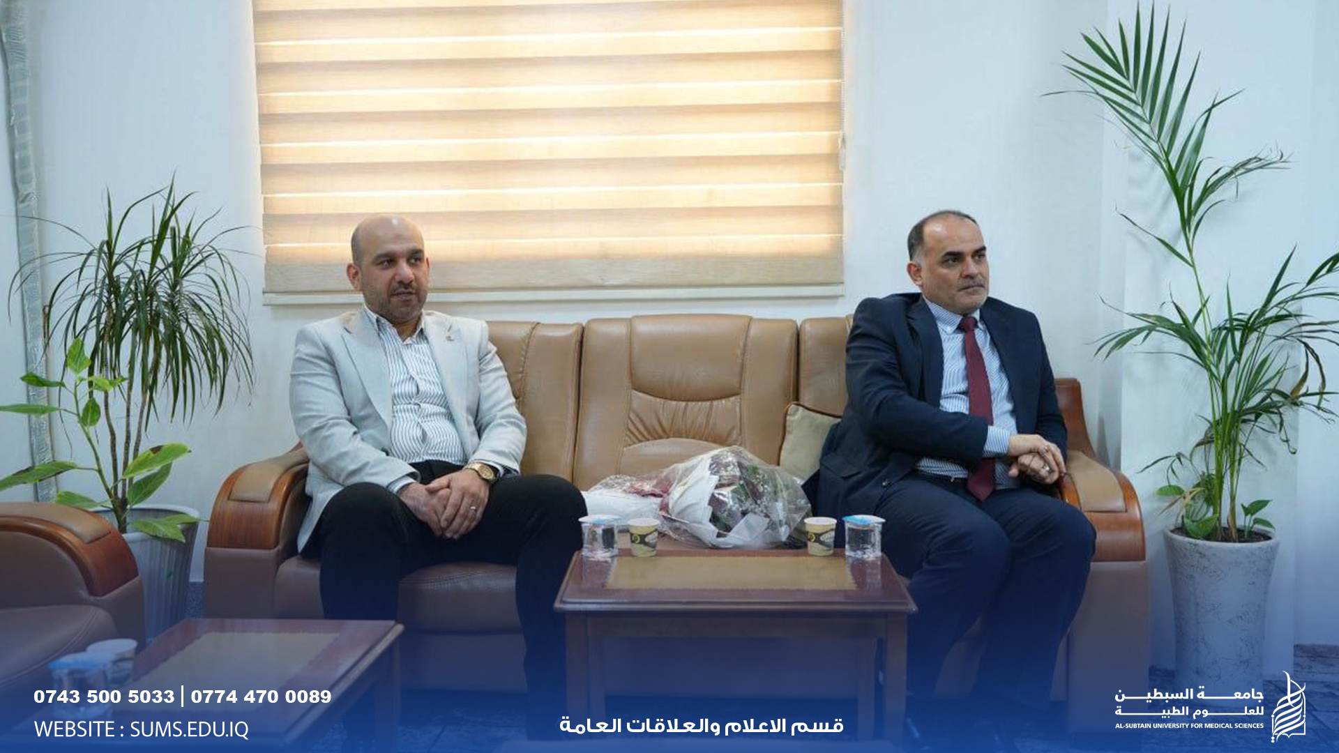زار عميد كلية الطب في جامعة السبطين (عليهما السلام) للعلوم الطبية، الأستاذ المساعد الدكتور محمد فوزي القنبر، برفقة وفد إداري وتدريسي من الكلية، كلية الطب في جامعة العميد لتقديم التهاني إلى الأستاذ الدكتور رياض مصطفى مرتضى بمناسبة تسنمه مهام منصبه الجديد عميدًا للكلية.