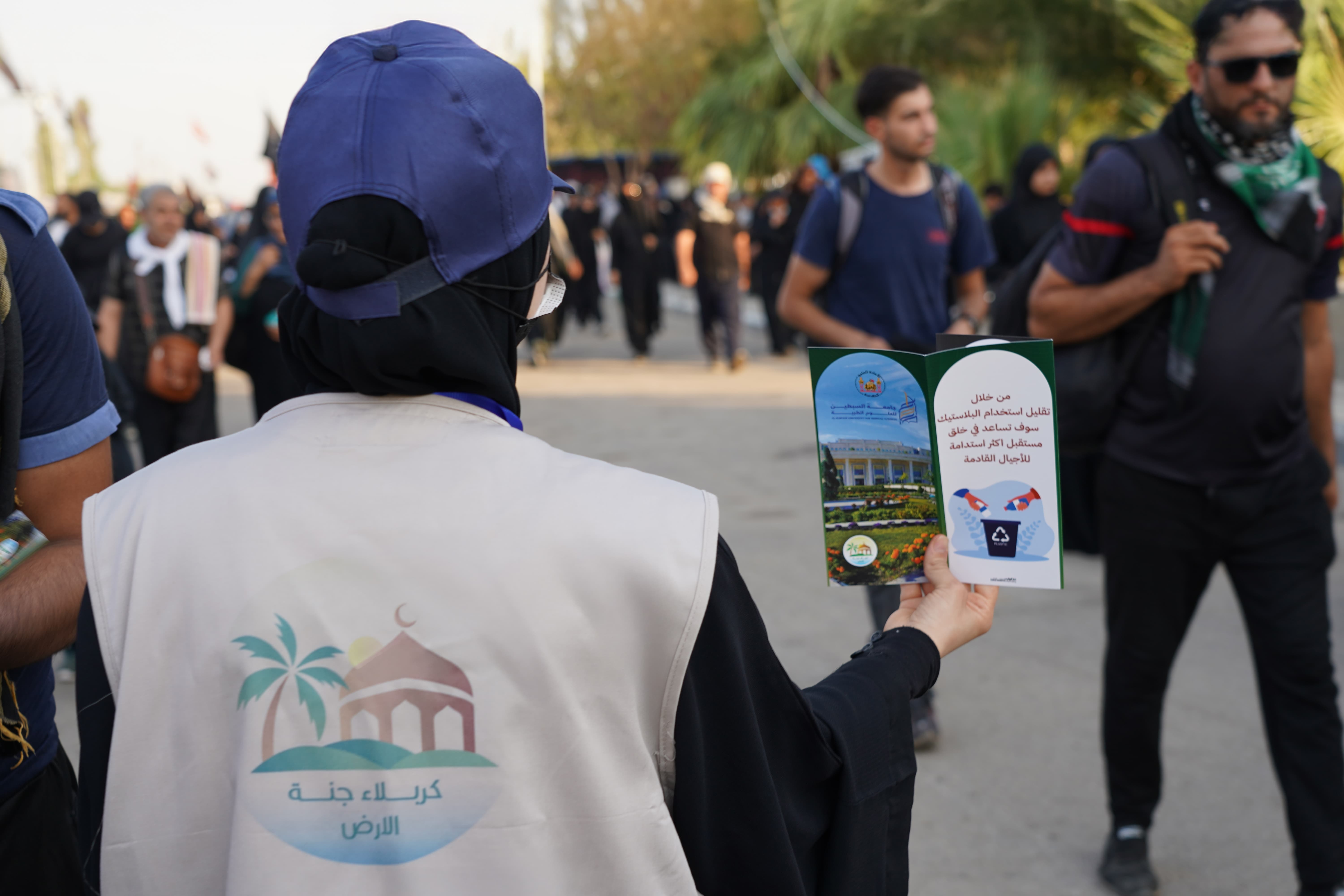جانب من عمل المتطوعين في جامعة السبطين (عليهما السلام) للعلوم الطبية ضمن حملة "كربلاء جنة الأرض"